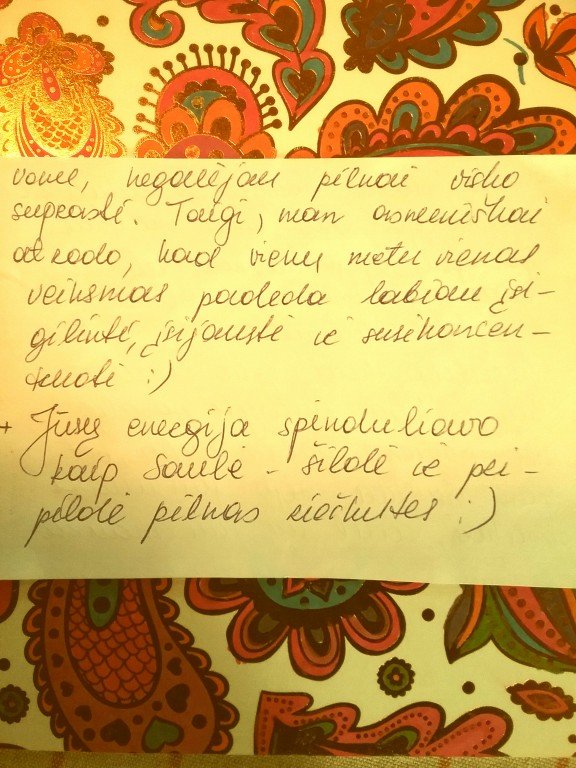 Bet nereikia įstrigti praėjusioje dienoje. Juk dieną keičiantis vakaras, šį - naktis, o rytas - naują dieną, skatina judėti į priekį. Todėl naujos mintys, sumanymai ir idėjos jau pamažu kirba. Netrukus po užsiėmimo sulaukiau naujų, įdomių ir prasmingų kvietimų ateičiai. Gal tai buvo jūsų nuopelnas? Bet kokiu atveju, ačiū.