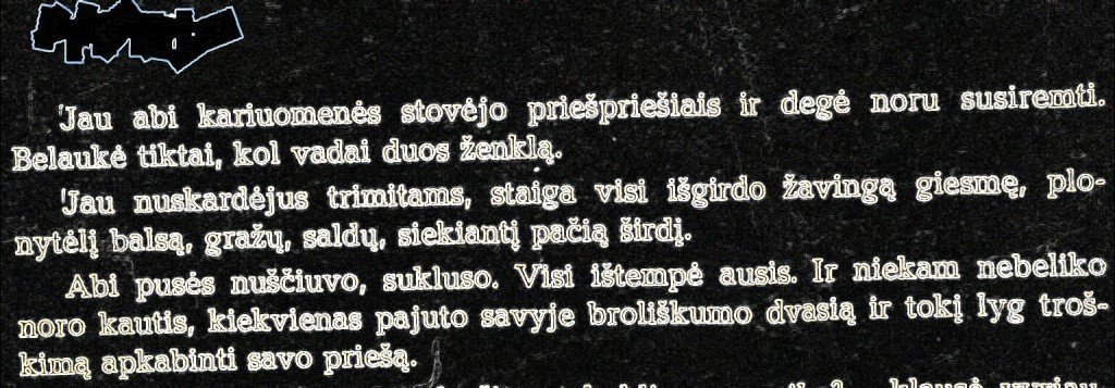 Abi pusės nuščiuvo, sukluso. Visi ištempė ausis. Ir niekam nebeliko noro kautis, kiekvienas pajuto savyje broliškumo dvasią ir tokį lyg troškimą apkabinti savo priešą.