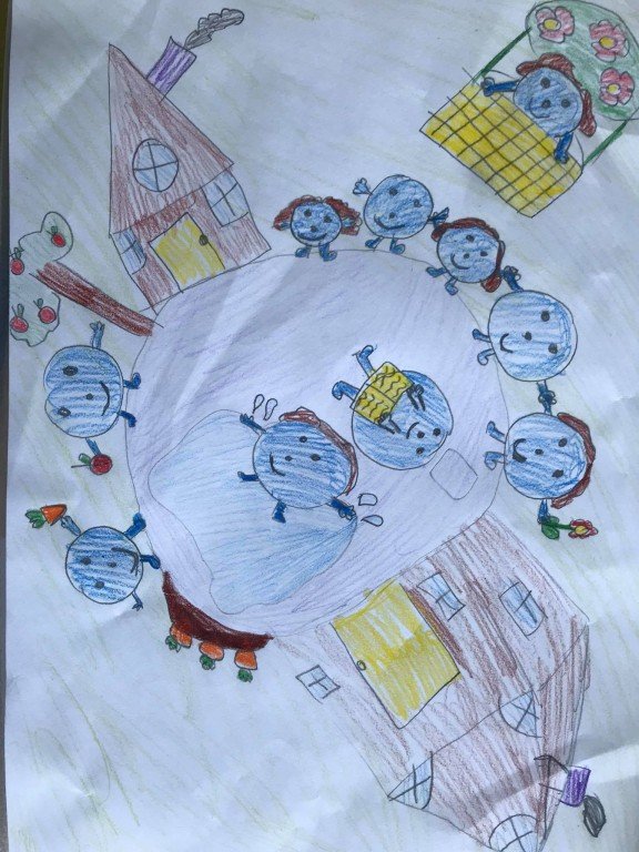 Iliustracija - ketvirtokės Aimėjos Nestiukaitės iš Vilniaus Balsių progimnazijos (mokytoja Vaida Uždavinė), įkvėpta eskimų pasakos "Mėlynasis karoliukas".